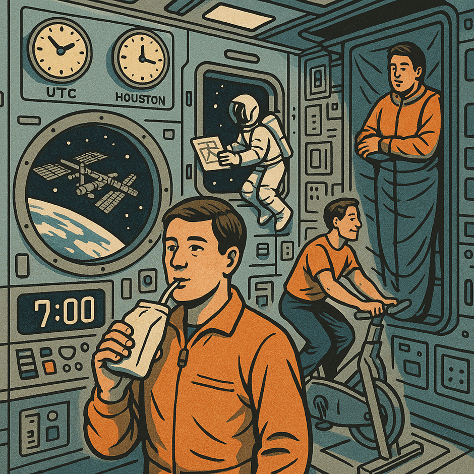 하지만 중력도 없고, 낮과 밤도 명확하지 않은 공간에서의 일상은 생각보다 훨씬 더 정밀하고 과학적으로 설계되어 있어요.