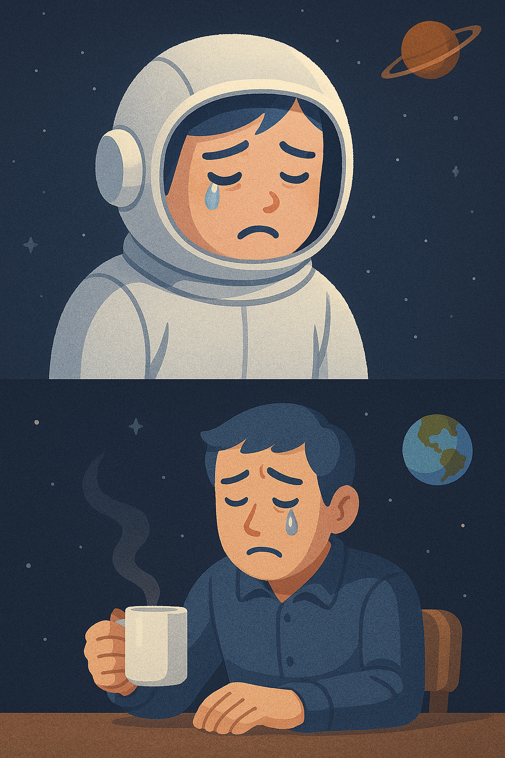 - 우주에서도 사람은 슬프고, 기쁘고, 감정이 북받칠 수 있습니다.